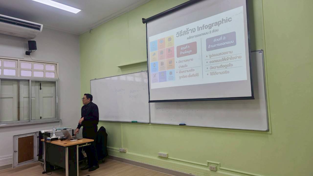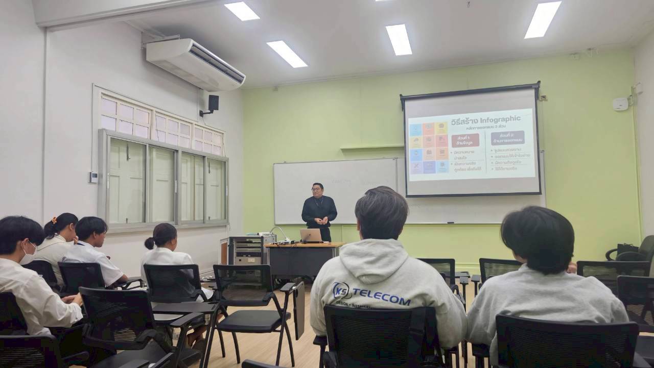 ภายในกิจกรรม นักศึกษาได้เรียนรู้หลักการออกแบบ Infographic ตั้งแต่การวางองค์ประกอบพื้นฐาน การเลือกใช้ฟอนต์และโครงสร้างภาพ ตลอดจน “จิตวิทยาของสี” เพื่อสื่อสารข้อมูลอย่างมีประสิทธิภาพและกระตุ้นความสนใจของผู้อ่าน นอกจากนี้ นักศึกษายังได้เลือกประเด็นจากผลสำรวจของสวนดุสิตโพล มาออกแบบ Infographic ตามสไตล์ของตนเอง ก่อนนำเสนอผลงานและแรงบันดาลใจเบื้องหลังการออกแบบในช่วงท้ายกิจกรรม