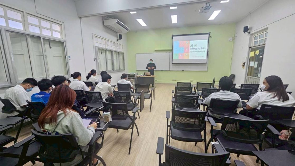 สวนดุสิตโพล มหาวิทยาลัยสวนดุสิต จัดกิจกรรม Poll Lab ครั้งที่ 35 ในหัวข้อ “สร้าง Infographic สื่อสารไว ตรงใจ ให้ความรู้” เพื่อพัฒนาทักษะการสื่อสารเชิงสร้างสรรค์ให้แก่นักศึกษาสาขาภาษาและการสื่อสาร ชั้นปีที่ 1 จำนวน 30 คน เมื่อวันที่ 2 ธันวาคม 2568 เวลา 09.00–12.00 น. ณ ห้อง 1108 อาคาร 1 มหาวิทยาลัยสวนดุสิต