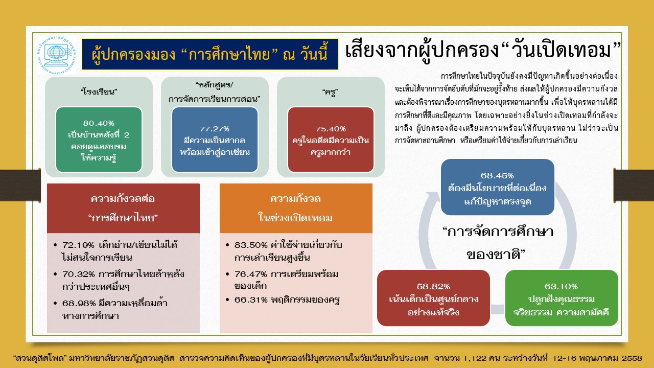 | “คนไทย” คิดอย่างไร ? กับ “การแต่งงานระหว่างเรียนระดับอุดมศึกษา” |  |  | | 2542 |