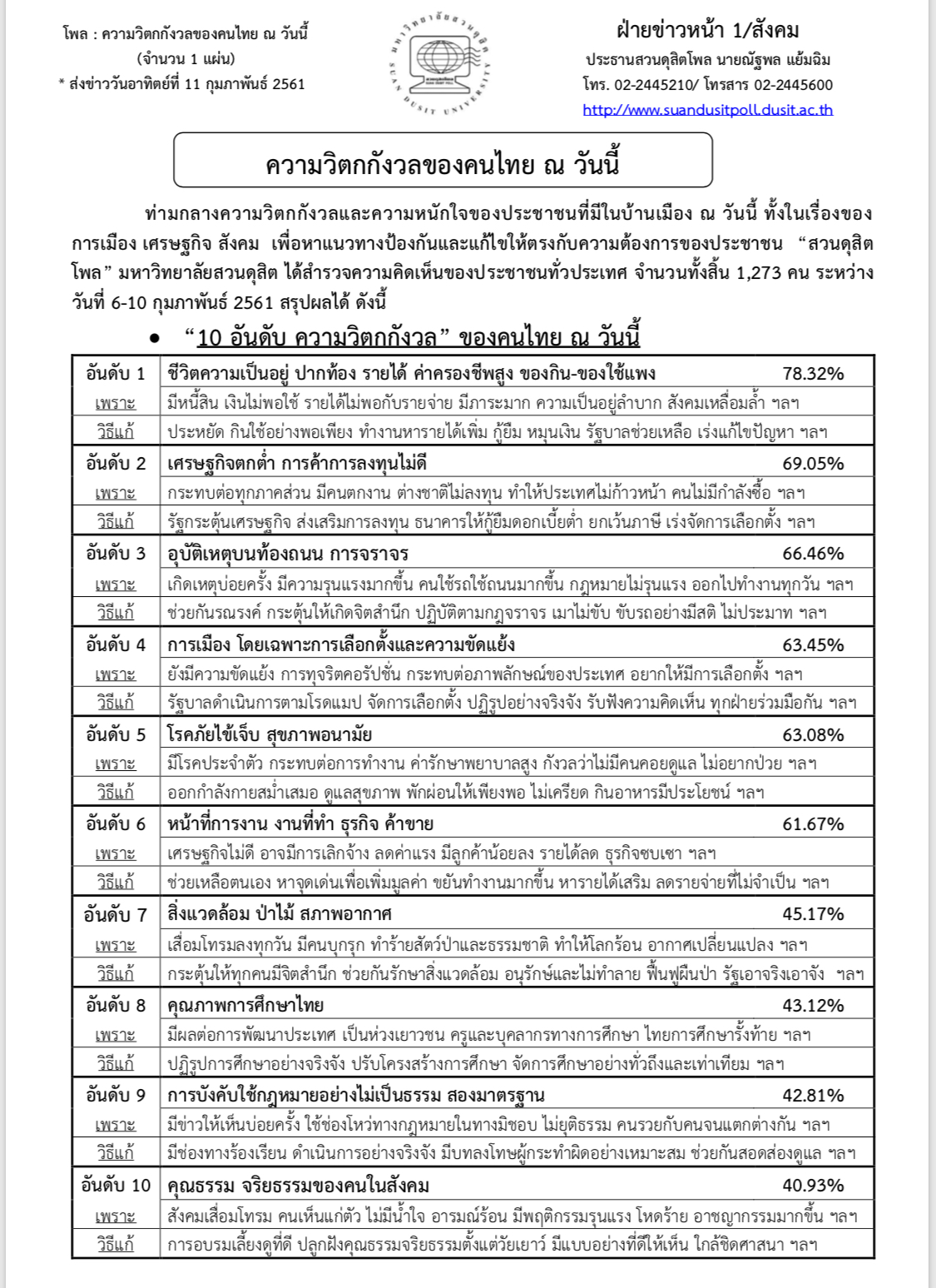 | ปัญหาเร่งด่วนของคนไทย ณ วันนี้ |  |  | 16/03/2568 | 2568 |