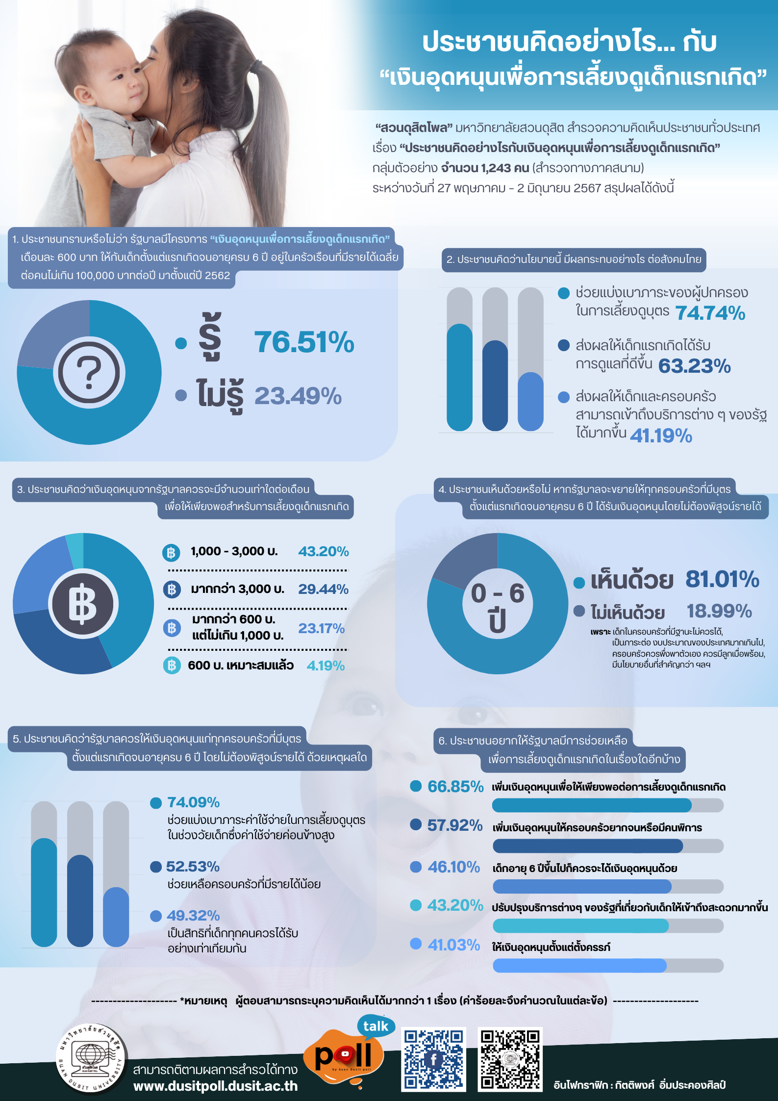 | ประชาชนคิดอย่างไร กับ เงินอุดหนุนเด็กแรกเกิด |  |  | 06/06/2567 | 2567 |
