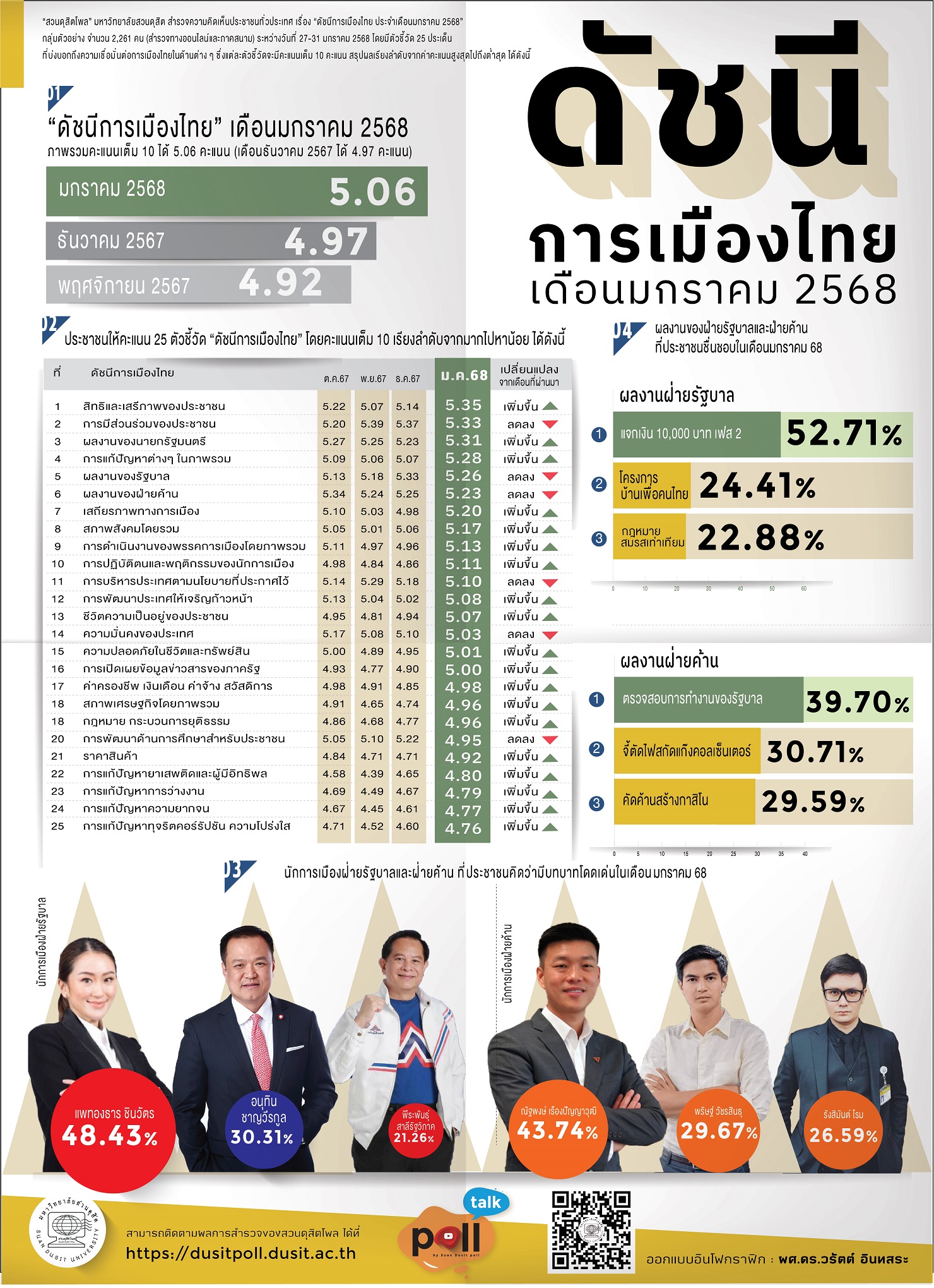 | “ดัชนีการเมืองไทย” เดือนมกราคม 2568 |  |  | 02/02/2568 | 2568 |