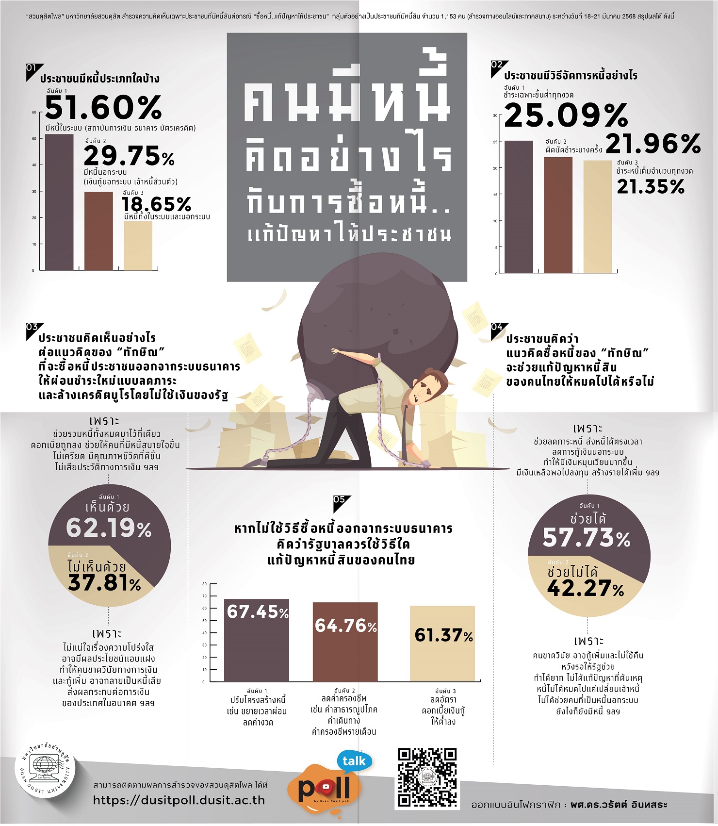 | คนมีหนี้คิดอย่างไรกับการซื้อหนี้..แก้ปัญหาให้ประชาชน |  |  | 23/03/2568 | 2568 |