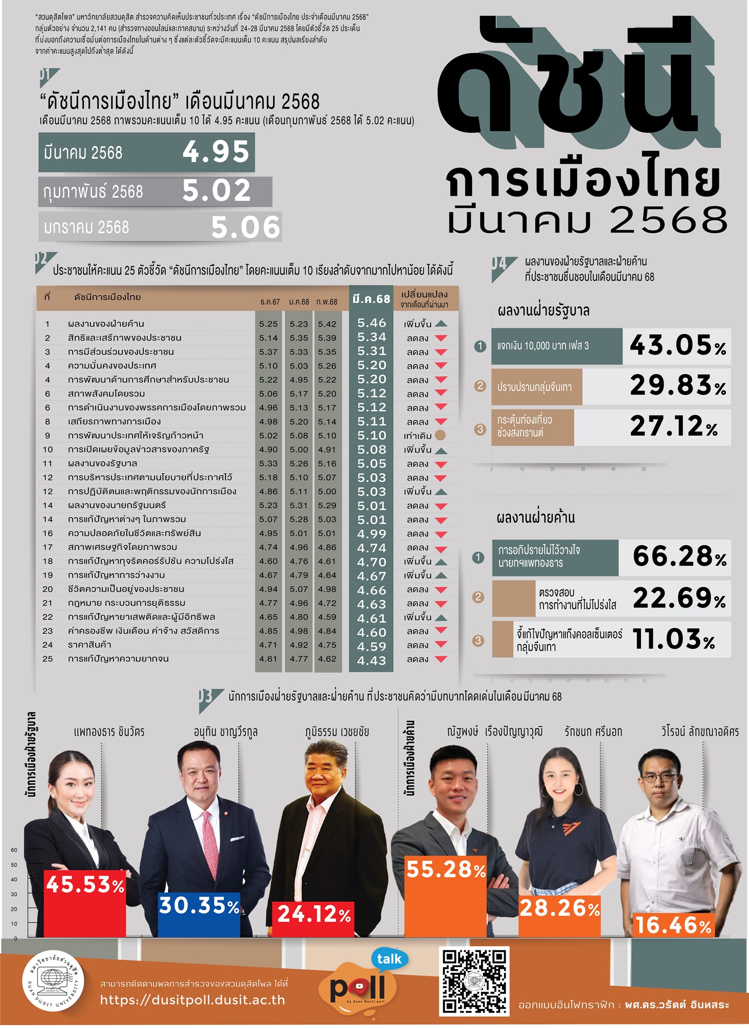 | “ดัชนีการเมืองไทย” เดือนมีนาคม 2568 |  |  | 31/03/2568 | 2568 |