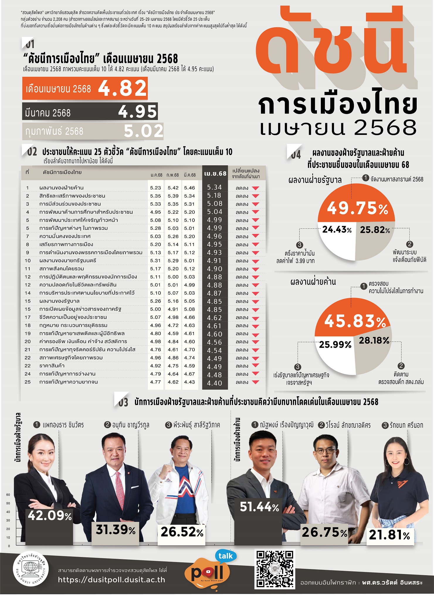 | “ดัชนีการเมืองไทย” เดือนเมษายน 2568 |  |  | 30/04/2568 | 2568 |