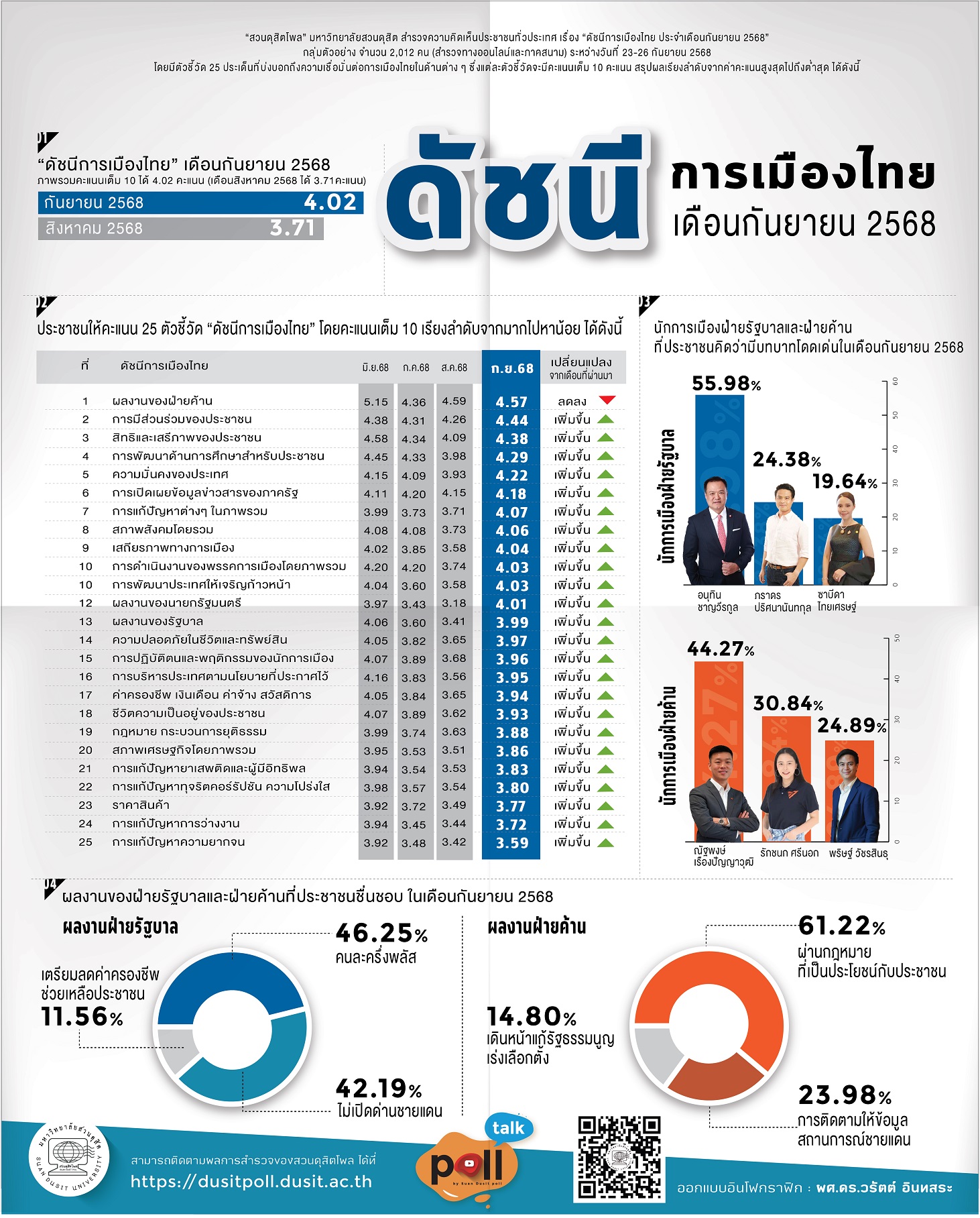 | ดัชนีการเมืองไทย ประจำเดือนกันยายน 2568 |  |  | 28/09/2568 | 2568 |