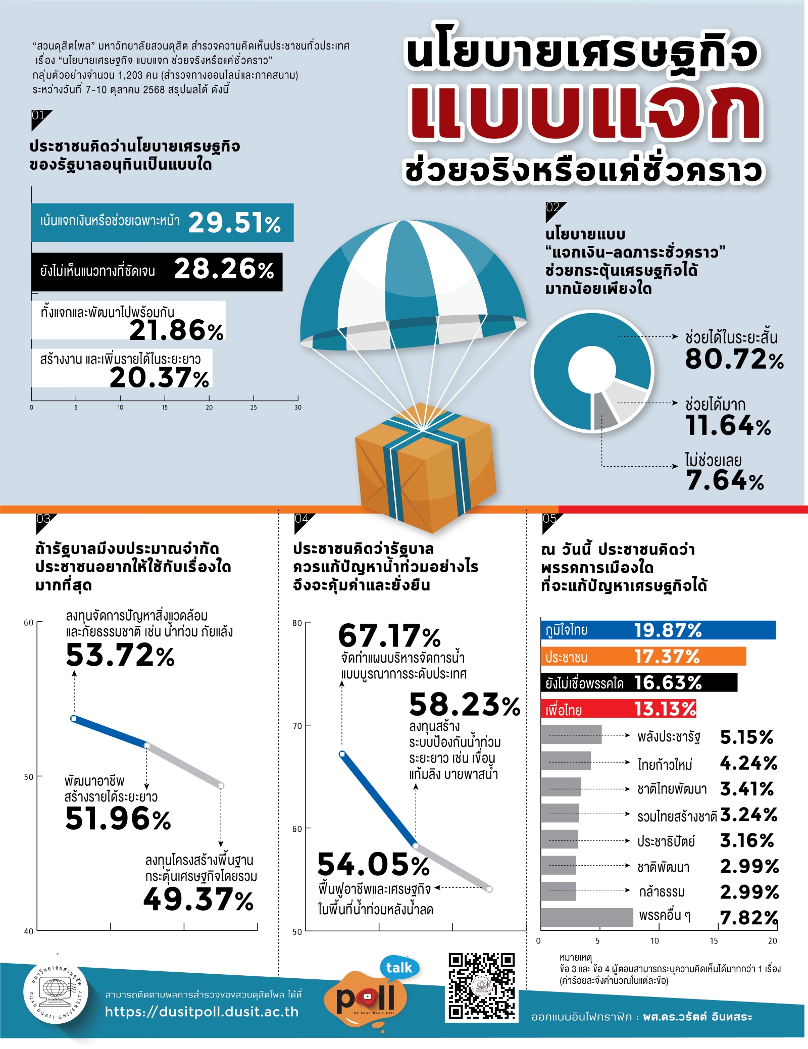 | “นโยบายเศรษฐกิจแบบแจก ช่วยจริงหรือแค่ชั่วคราว” |  |  | 12/10/2568 | 2568 |