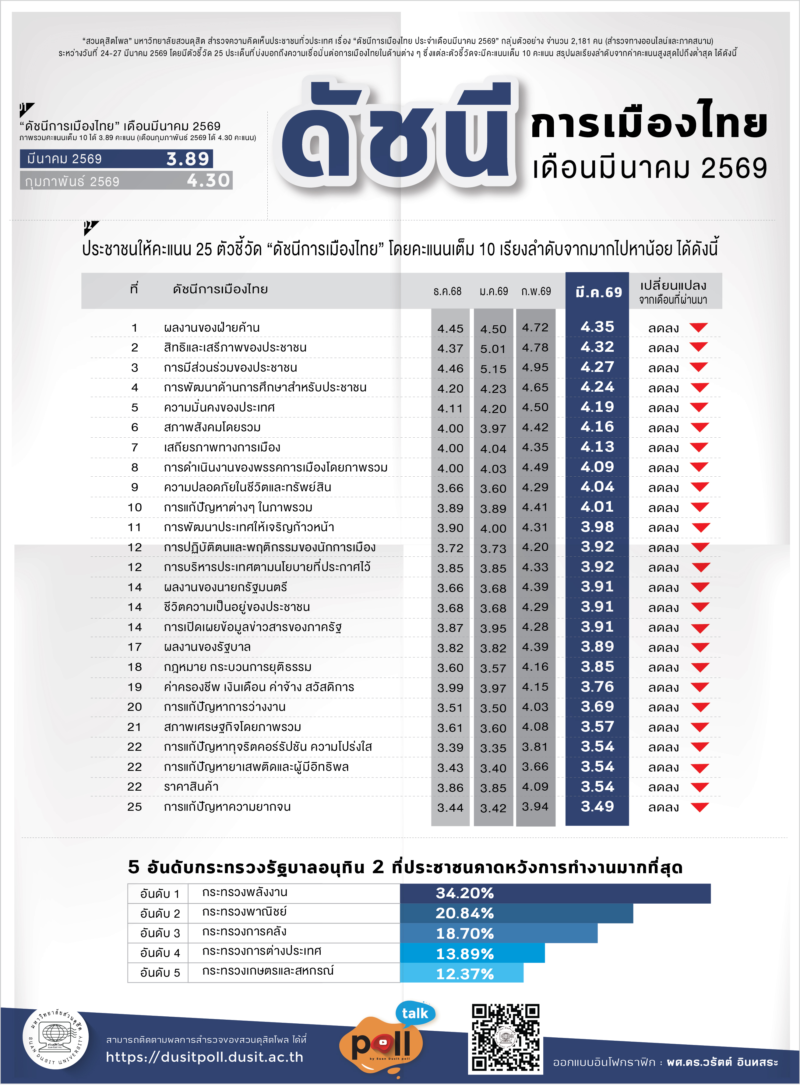 | ดัชนีการเมืองไทย ประจำเดือนมีนาคม 2569 |